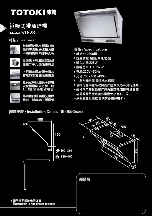S1628 28"近吸式排油煙機